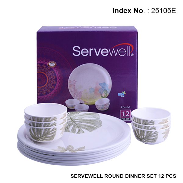 SERVEWELL ROUND DINNER SET 12 PCS (DINNER PLATES 6 PCS & VEGETABLE BOWLS 6 PCS)